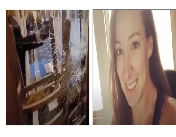 VISIT OUR YOUTUBE CHANNELVideo shows the officer was off to the side ofthe screen, halfway in and out of a doorway, holding a gun, and Babbitt crouching, making her way through broken glass-paneled doors.