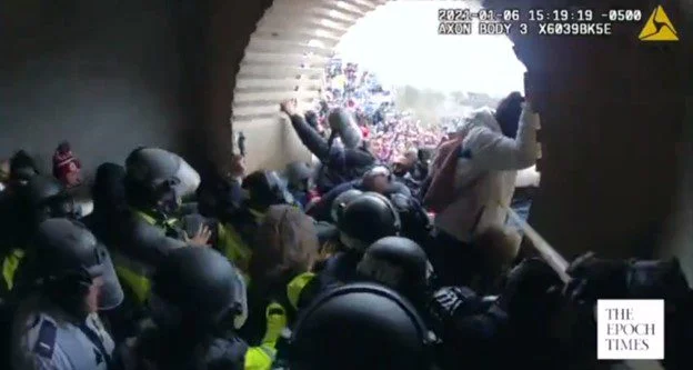 The Epoch Times obtained bodycam footage from Officer Michael Dowling, a Metropolitan Police Department officer, beating Trump supporters with a flagpole. There are dozens of protesters who have been in jail for one or two years that did much less. This is why Democrats withheld the videos from the public and expect there will be more violence coming from the RFBI and the police. Dowling hit one woman in the head twice as she was trying to leave the area of the tunnel.