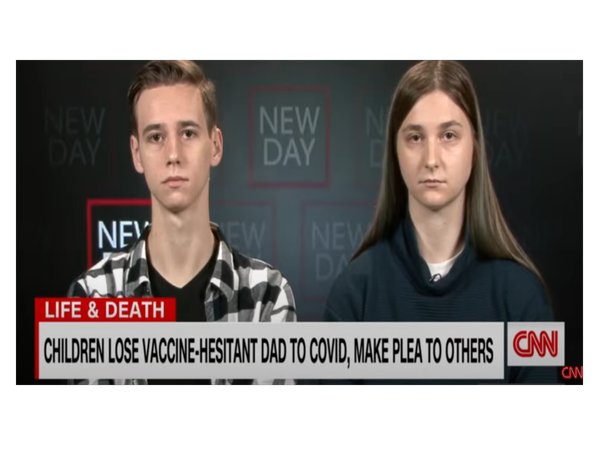 Monday morning, during an interview on CNN, two teenagers who recently lost their father who was unvaccinated to COVID-19 said that they blamed their father’s death on misinformation about vaccines, specifically mentioning reports from Fox News’s Tucker Carlson. As if Tucker told anyone to not get vaccinated.