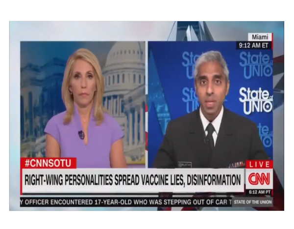 “My worry is that all this misinformation that’s floating around is having a real cost that can be measured in lives lost and that is just tragic,” says US Surgeon General Vivek Murthy on the spread of vaccine disinformation on social media and by conservative media. #CNNSOTU pic.twitter.com/hBTk3NDs9s
