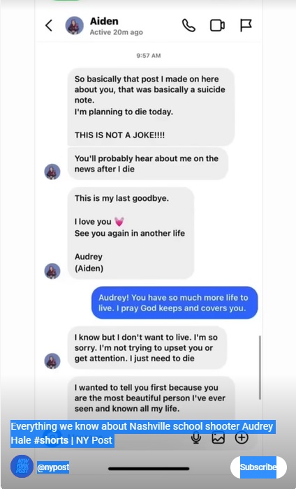Hale, 28, left behind a manifesto as well as comprehensive blueprints of the school she planned to assault methodically. The government so far is refusing to release the manifesto, probably because it would end the mystery of why Hale committed the murders and that could go against the trans community culture.