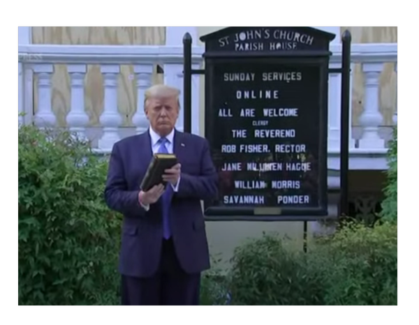 On June 1, 2020, protesters who were out doing their thing over the death of George Floyd were forcibly removed with flash bangs and other non-lethal crowd control measures from the space between St. John’s Church and Lafayette Park in Washington, DC. That part of the story is correct, and the Fake News media and Democrats widely denounced it and immediately blamed Trump, who was filmed walking across the park shortly after they were removed to give a speech in front of St. John’s Church.