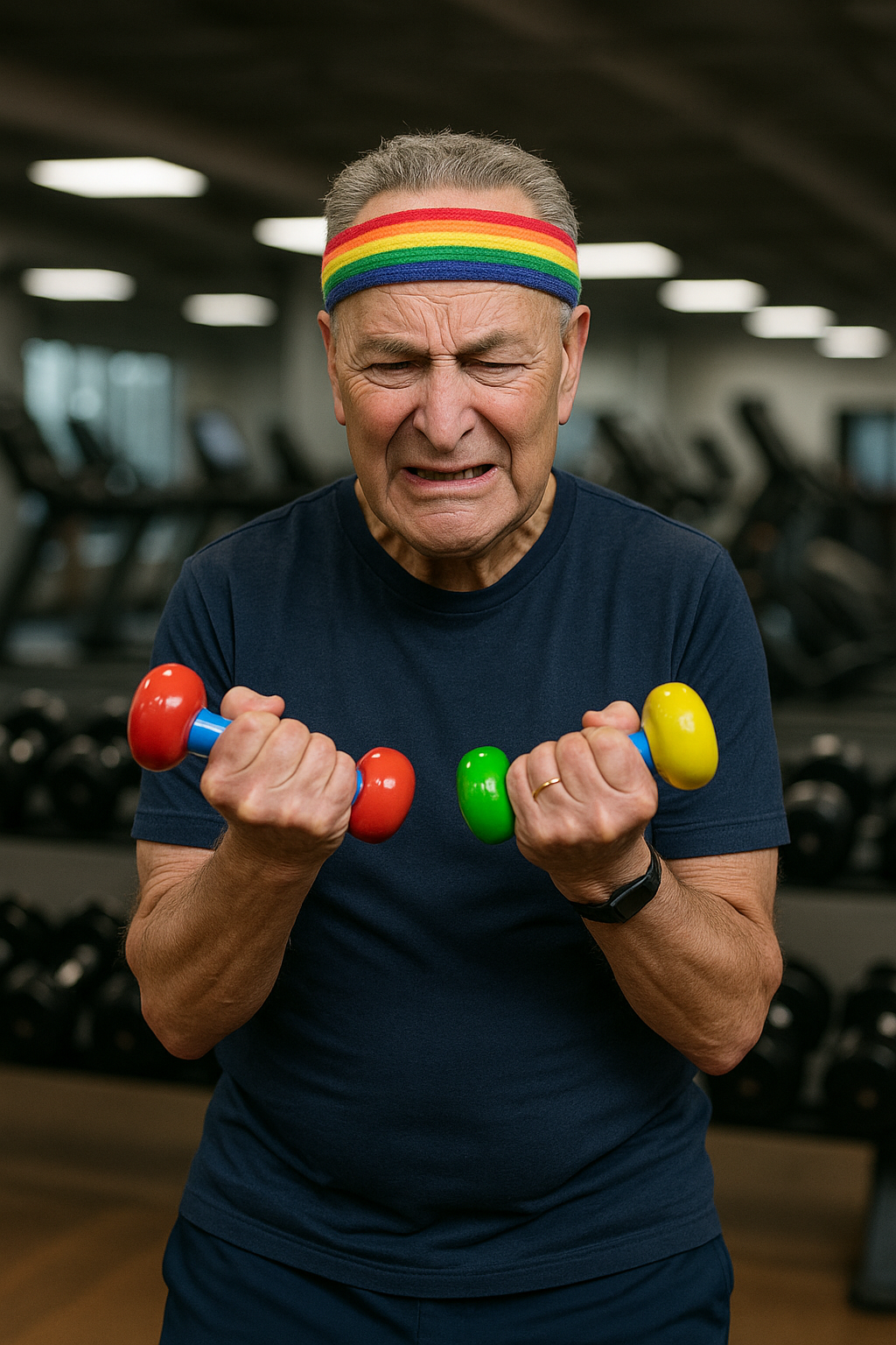And here’s Chuck Schumer (D-NY) trying to pump some real iron.