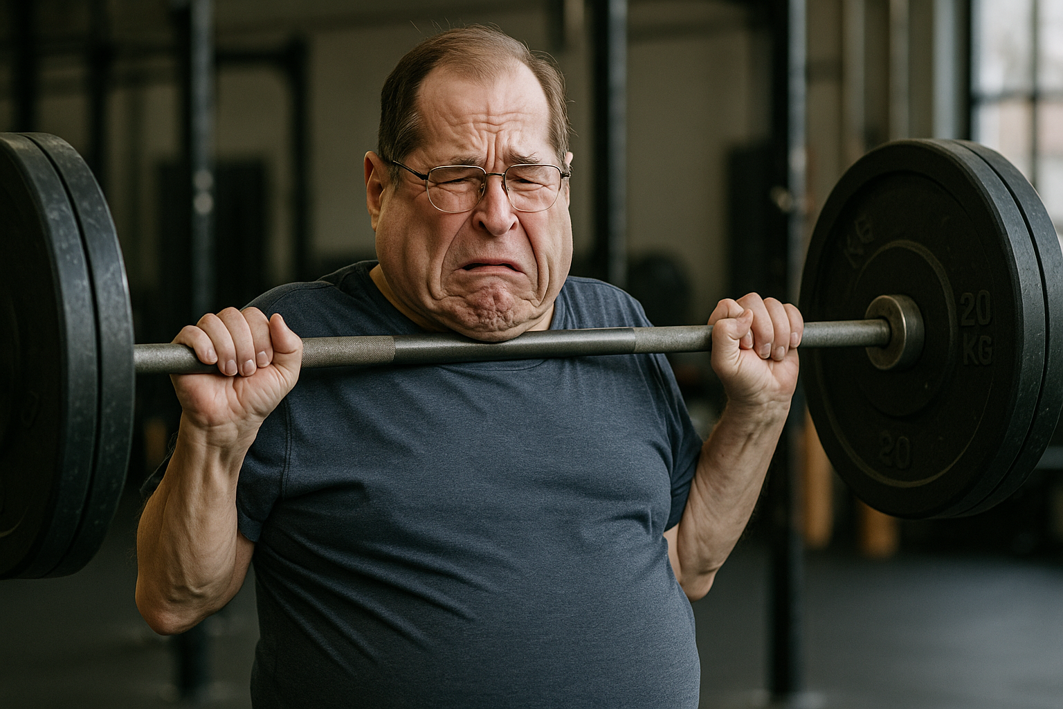 Here’s Gerry Nadler (D-NY) attempting to lift weights, and, well, let’s just say it’s not going according to plan. For someone whose blood type used to be “Donut,” you’d think he’d hit the gym a little more often.