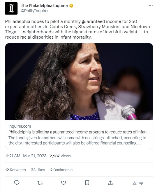 Consider Philadelphia, where the government pays women to bear children.